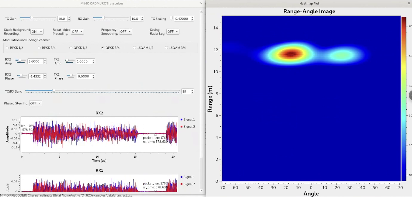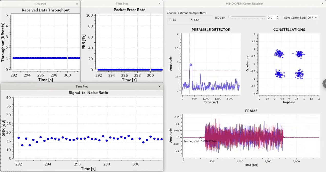 Execute the flowgraph and set the RX Gain to 0dB to receive the OFDM data.