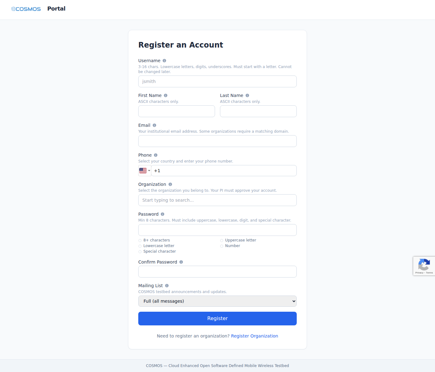 - Organization — select your research group from the dropdown (search to filter)